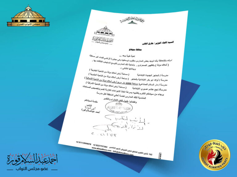 التنبيه بسرعة إنهاء إجراءات التخصيص لضم وتخصيص المساحات المناسبة لتوسيع المدارس – مركز دار السلام – سوهاج