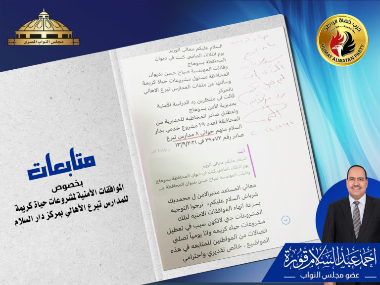 الموافقات الأمنية لمشروعات حياة كريمة للمدارس تبرع الأهالي بمركز دار السلام