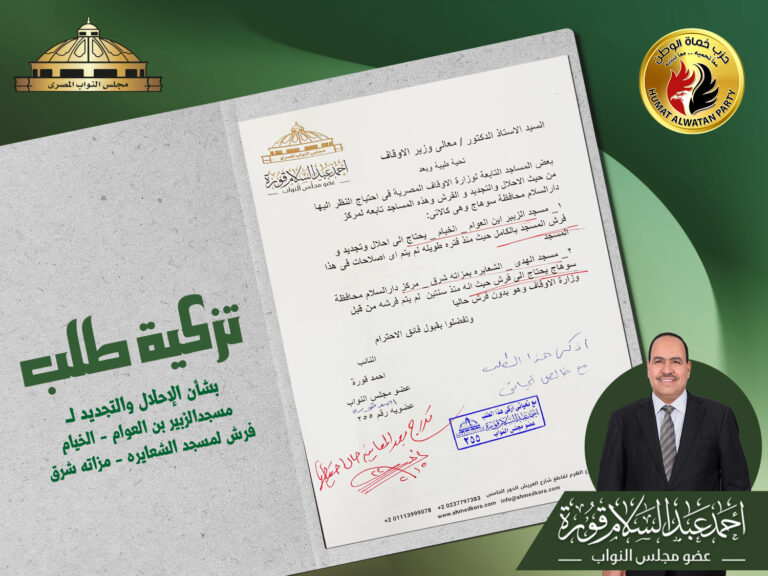 تزكية طلب بشأن الإحلال والتجديد لــ مسجد الزبير بن العوام – الخيام وفرش لمسجد الشعايره – مزاته شرق