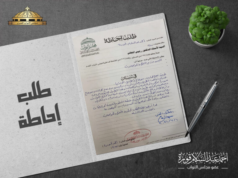 طلب إحاطه للسيد وزير النقل والمواصلات بخصوص طریق نجع حمادی وسوهاج “طريق الموت”